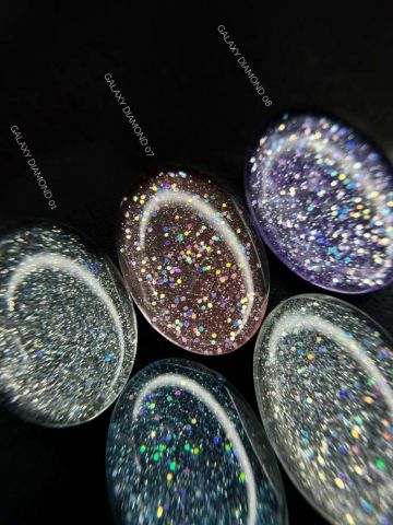 GDR07 "GALAXY DIAMOND" гель лак с блестками разной формы и размера и светоотражающим шиммером